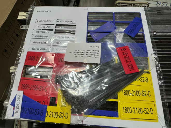 Một bộ nhãn chứa nhiều đơn vị nhãn. Mỗi đơn vị được in với một trong các chi tiết sau: · Số sê-ri sector: đủ nhãn cho 6 sector. · Tên công nghệ: 2G, 3G hoặc 4G. · Băng tần: 900 MHz, 1800 MHz hoặc 2100 MHz. · Ký hiệu sợi quang cho cùng một sector, công nghệ và băng tần (với cùng MIMO): A, B, C hoặc D.